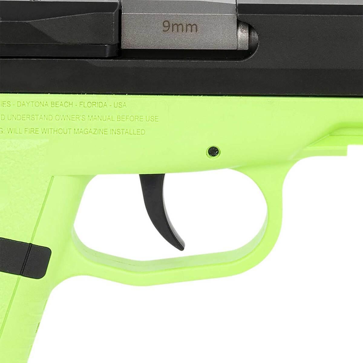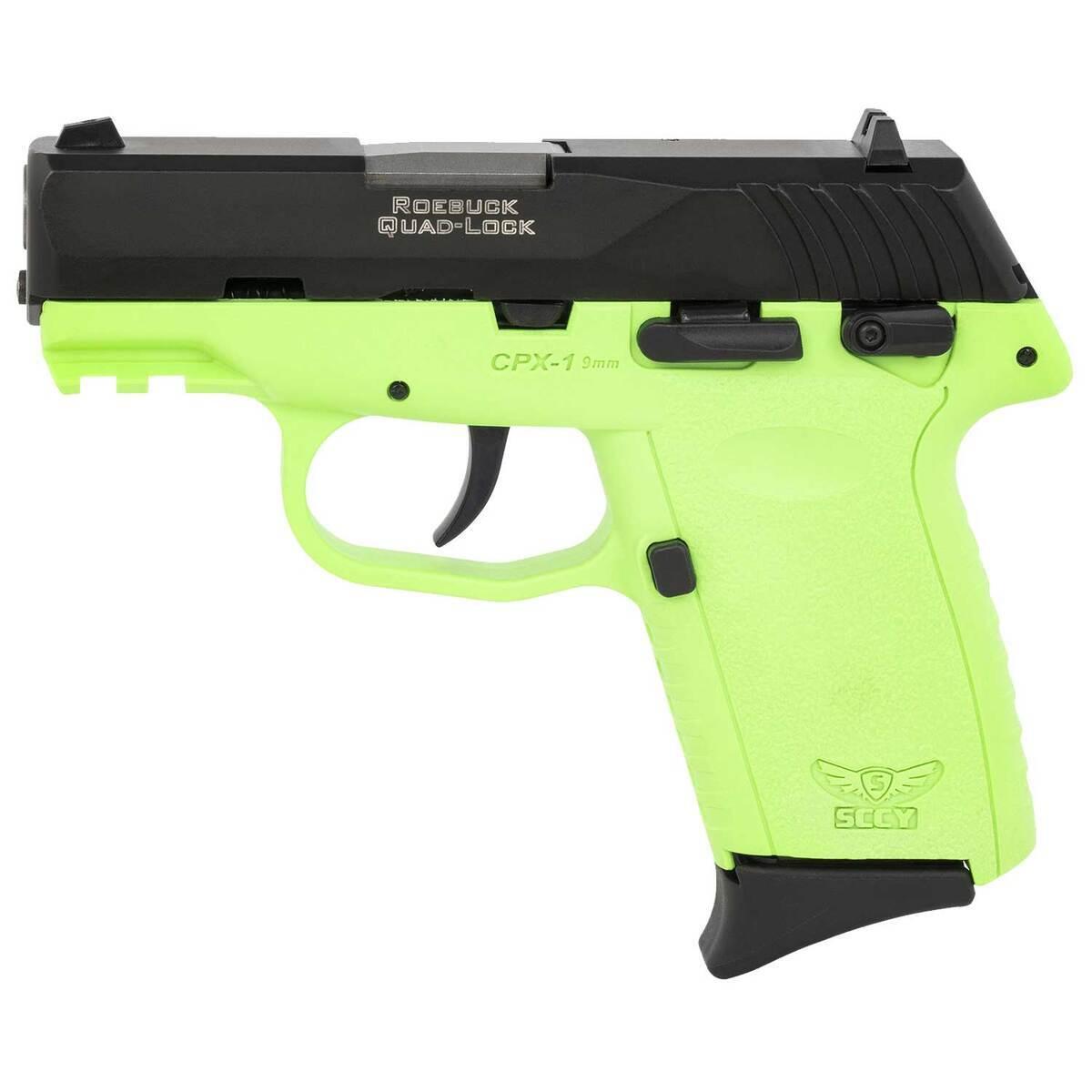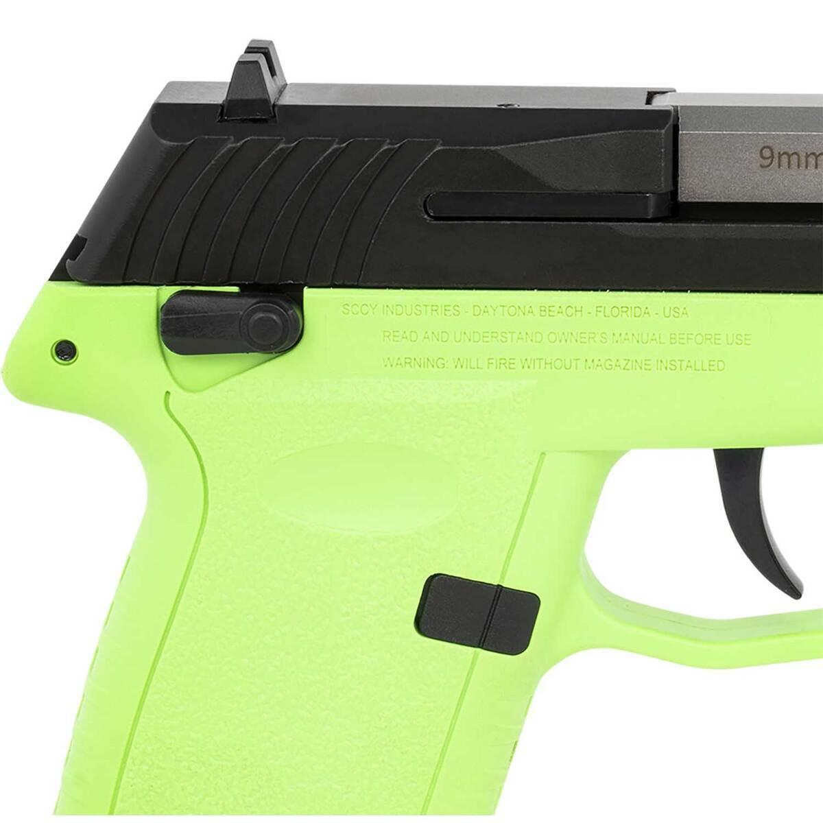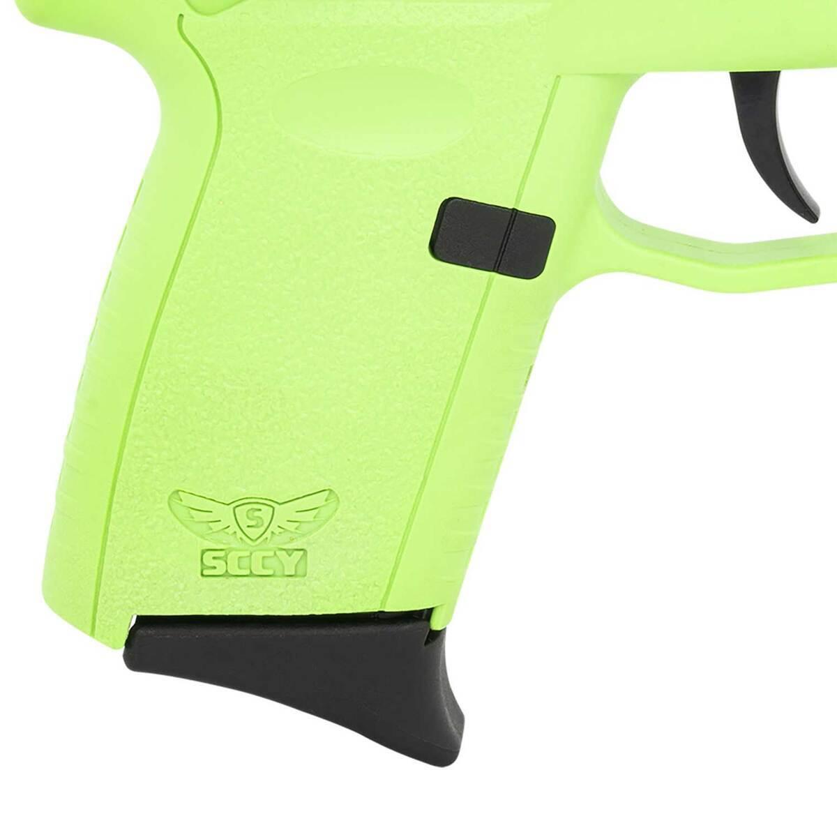 The SCCY CPX-1 Gen3 9mm Luger Pistol combines affordability, precision engineering, and practical features into an exceptional firearm for concealed carry. Designed with a 3.1-inch black nitride barrel and a lime green Zytel polymer frame, it delivers a secure grip thanks to its integral recoil cushion on the backstrap. The aircraft-grade 7075 T6 aluminum alloy receiver ensures strength and durability, while the stainless steel slide adds reliability with an overmolded polymer extension for ease of operation. Featuring a double-action-only (DAO) hammer system with an inertial firing pin, it prioritizes safety by preventing accidental discharges. The improved Gen3 design includes a Picatinny rail for accessories, upgraded sights, and an enhanced grip texture for optimal handling. The firearm comes equipped with external thumb safety molded into the frame and offers a smooth, consistent 9lb trigger pull. Included are two 10-round magazines with finger extensions and flat base options, making this pocket-size pistol a versatile and dependable choice for concealed carry.