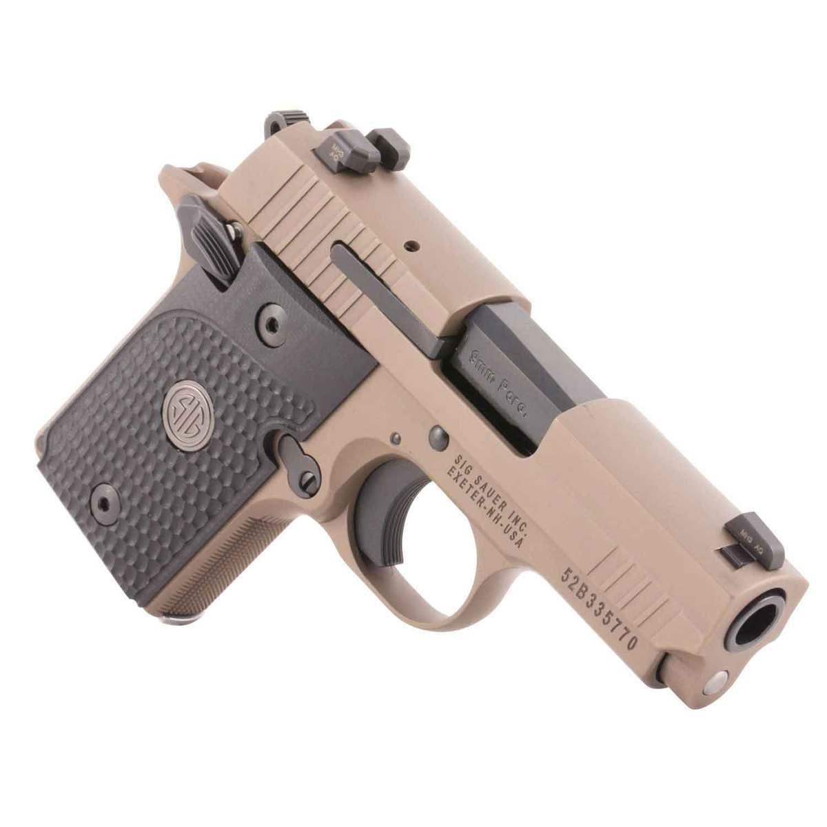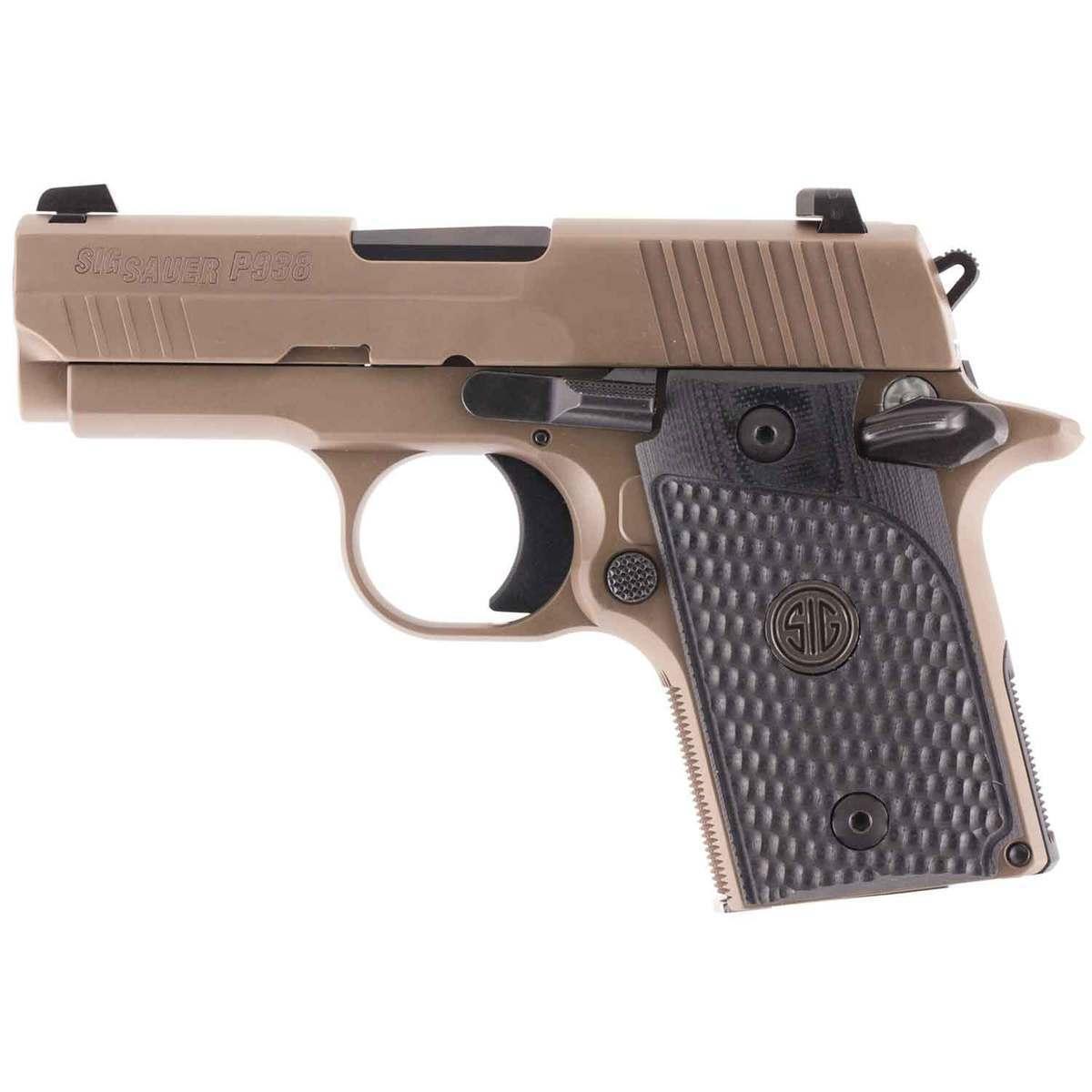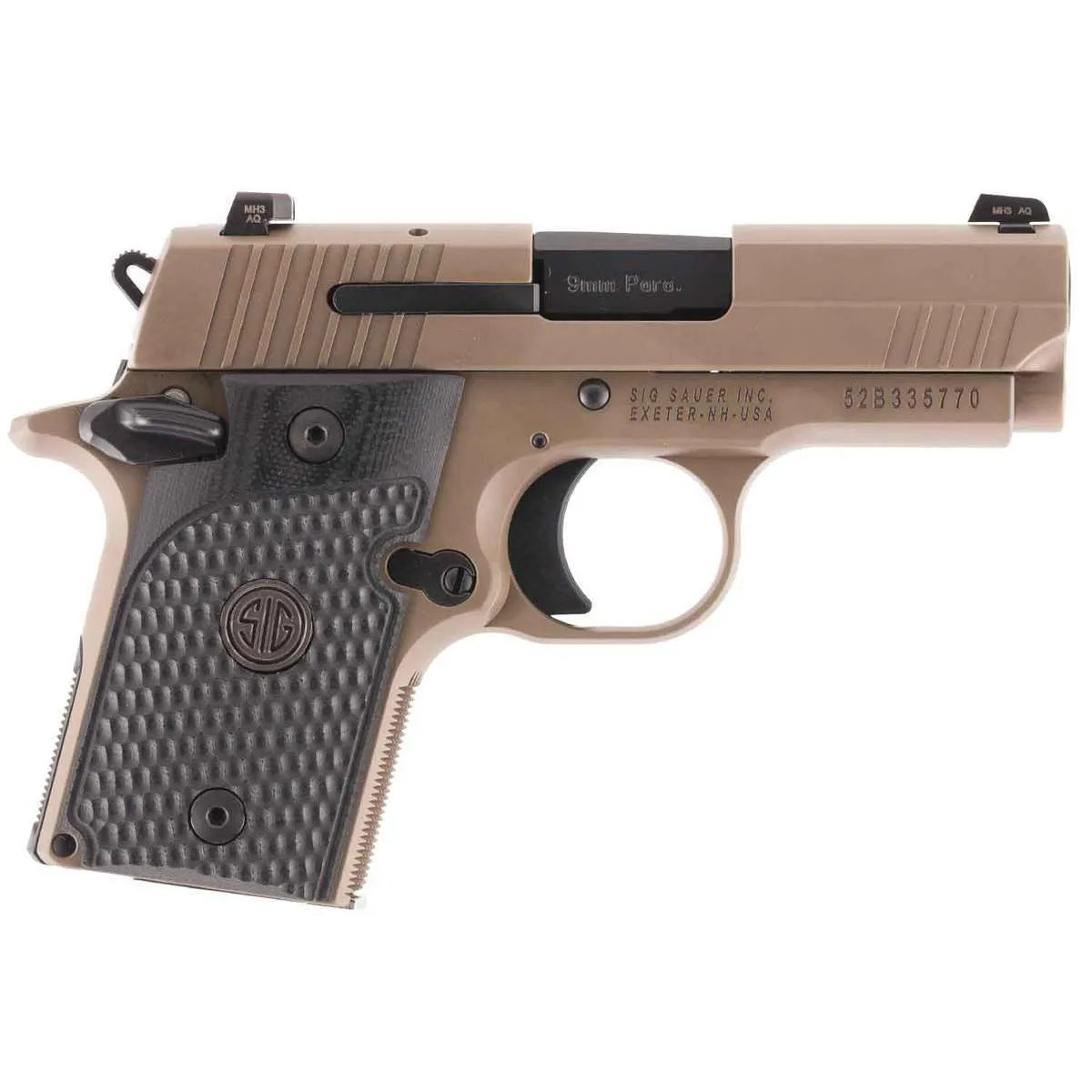 The Sig Sauer P938 Emperor Scorpion is a micro-compact 9mm pistol that offers the ballistic advantage of the 9mm cartridge in a lightweight and easily concealable platform. Featuring a single-action-only trigger for unmatched accuracy, full-size SIGLITE Night Sights, and an ambidextrous safety, this pistol is perfect for both left- and right-handed shooters. Its all-metal frame packs six plus one rounds of 9mm ammunition, while the FDE frame and G-10 Piranha grips provide a stylish and ergonomic design. Fans of the 1911 will appreciate the familiar placement of the thumb safety, magazine release, and slide stop lever. Designed for concealed carry and ease of use, the Emperor Scorpion also comes equipped with a threaded barrel for added functionality.