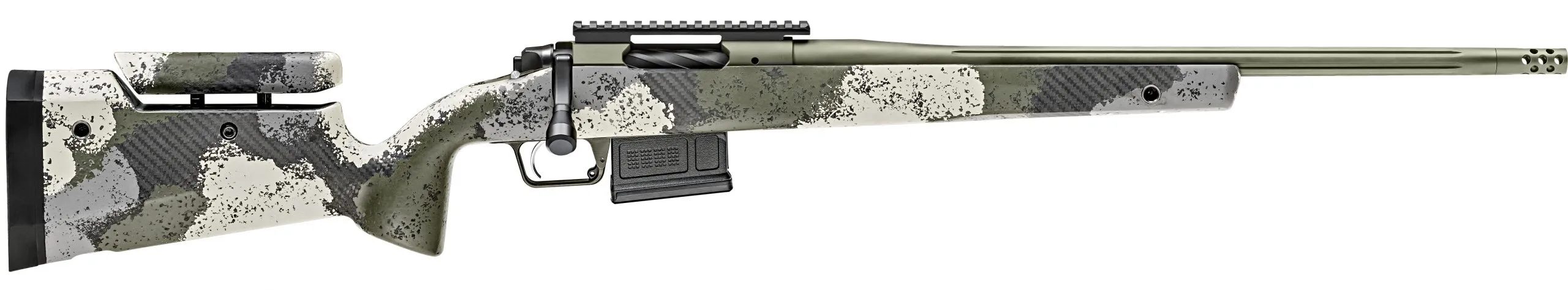 The Springfield Armory 2020 Waypoint delivers precision and performance in its bolt action design. Chambered in 6mm Creedmoor, this rifle features a 20-inch fluted stainless steel barrel with a Mil-Spec Green Cerakote finish, ensuring durability and corrosion resistance. Built with a camo stock evergreen carbon fiber/M-LOK design, the rifle is both lightweight and highly ergonomic. It includes premium features such as an adjustable TriggerTech trigger for optimized shot control, a radial brake, and an SA Picatinny mount for versatile customization. Perfect for hunters and marksmen, the 2020 Waypoint Rifle Series is tailored for ultimate accuracy and reliability.