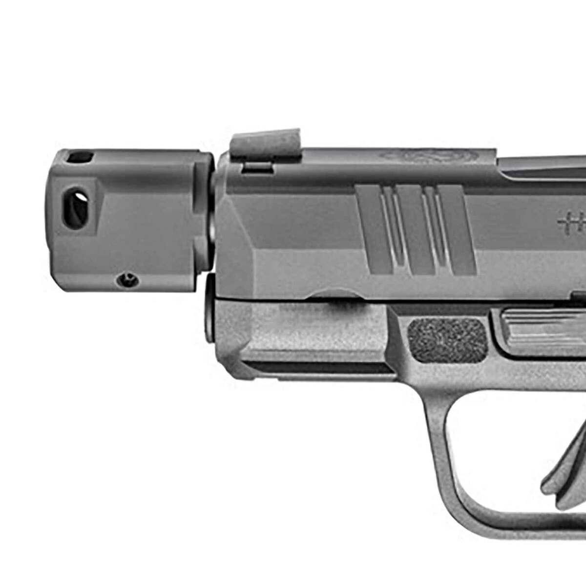 The Springfield Armory Hellcat RDP is a semi-automatic pistol chambered in 9mm, designed for concealed carry and defensive use. Featuring a Shield SMSc red dot, optics-ready slide, compensator, and threaded barrel, this handgun provides superior accuracy, enhanced control, and quick target acquisition. Its U-Notch rear sight and Tritium front sight ensure precision in low-light conditions. Built with a durable black polymer frame, it is lightweight and compact, weighing only 19.4 ounces with an overall length of 7 inches. With an included 11-round magazine and an extended 13-round magazine, the Hellcat RDP is ready to perform under any circumstance.