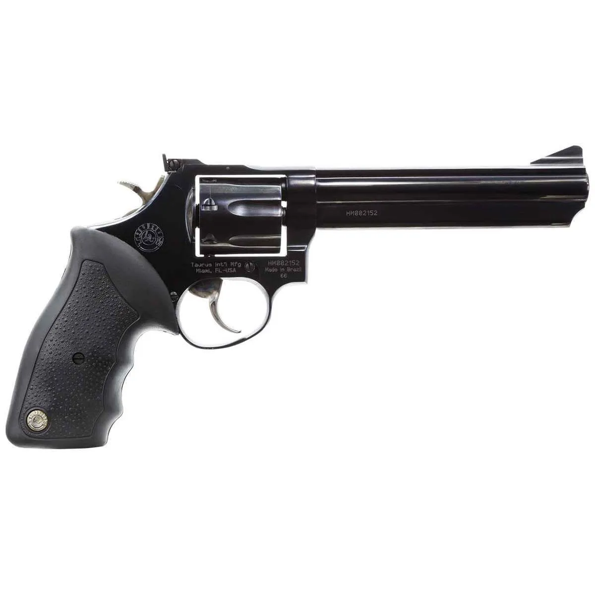 The Taurus 66 Series .357 Magnum 6-inch Blued Revolver offers exceptional performance and reliability for security personnel and homeland defense forces. This medium-frame, 6-shot revolver is equipped with comfortable black rubber grips and a deep, lustrous blued finish, ensuring both durability and comfort. Featuring blade front and adjustable rear sights, coupled with a custom Single Action/Double Action trigger, this revolver provides enhanced accuracy and faster follow-up shots. A trusted partner in critical situations, the Model 66 is a powerhouse designed for precision and reliability.