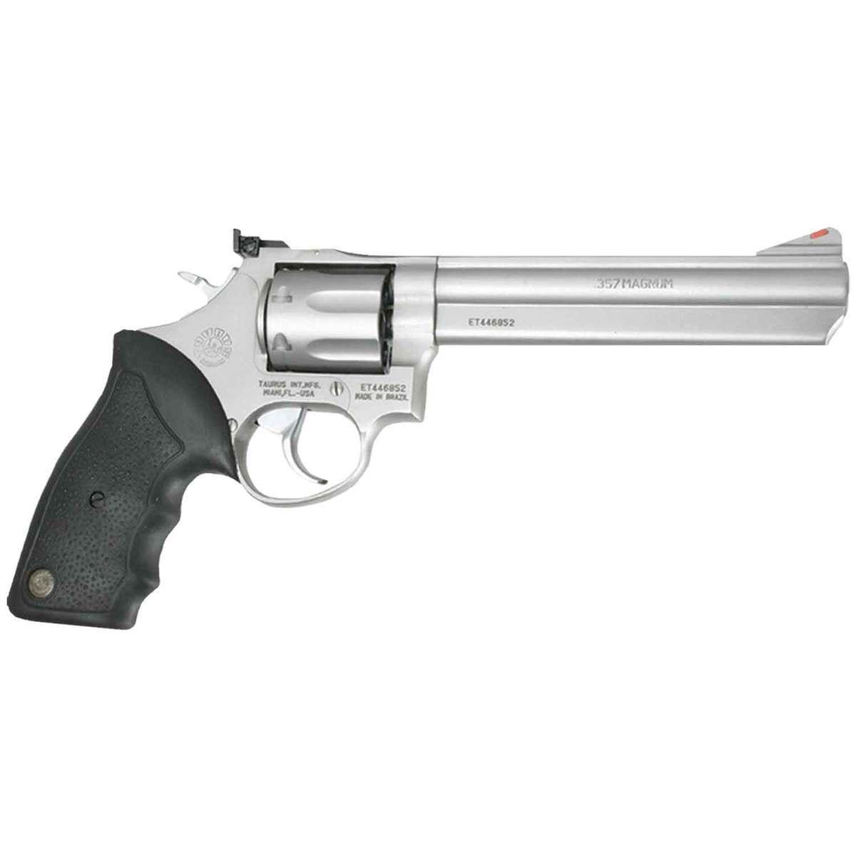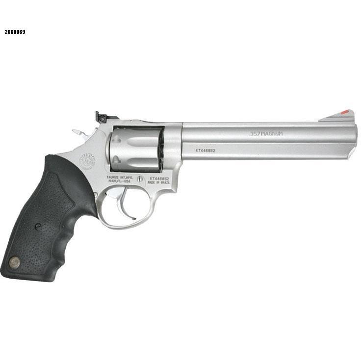 The Taurus Model 66 is a premium double- and single-action revolver tailored for precision and reliability. Chambered in versatile .357 Magnum and .38 Special, this revolver offers the ideal blend of power and performance for personal defense, target shooting, and hunting applications. Its 6-inch barrel enhances accuracy, while the adjustable sights allow for customization based on shooting conditions. The stainless steel finish complements its rugged medium-frame design, ensuring durability and a sleek, professional appearance. Equipped with a black rubber grip for optimal handling and comfort, the Model 66 accommodates a seven-round capacity, making it an excellent choice for skilled shooters seeking efficiency and versatility in a revolver. Made with attention to detail and quality craftsmanship, this revolver adheres to the high standards Taurus enthusiasts expect.