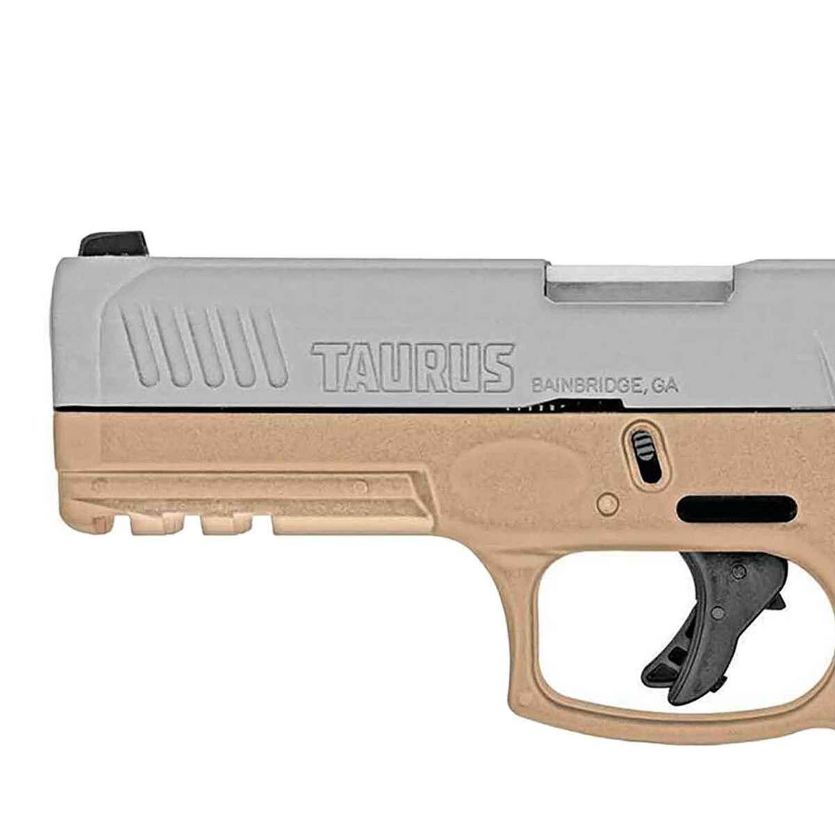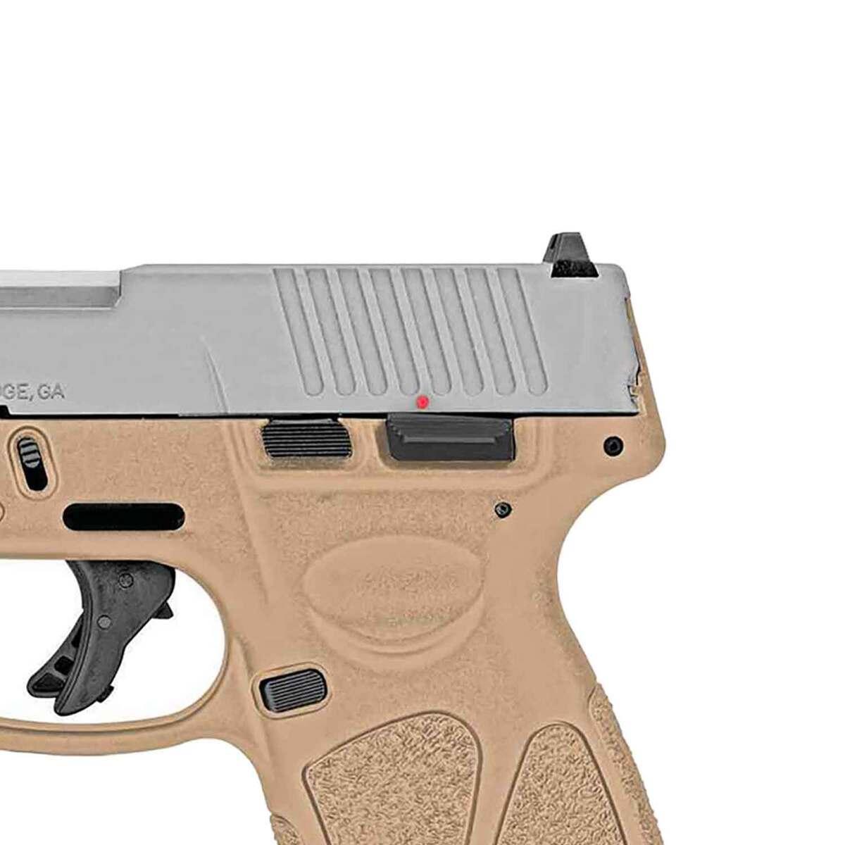 The Taurus G3 is a reliable and versatile semi-automatic pistol chambered in 9mm. Designed for both casual shooters and professionals, this striker-fired handgun features a durable polymer frame with a tan finish, complemented by a matte stainless steel slide. Its compact 4-inch barrel and overall length of 7.3 inches make it ideal for concealed carry, while its ergonomic white dot front and adjustable rear sights provide accuracy in a variety of shooting conditions. The pistol boasts a generous 15+1 round capacity, ensuring you’re prepared in any scenario. Additional features include steel serrated rear sights and a built-in Picatinny rail for added customization options. Weighing only 25 ounces, the Taurus G3 offers a lightweight yet dependable solution for self-defense, tactical operations, and recreational shooting.