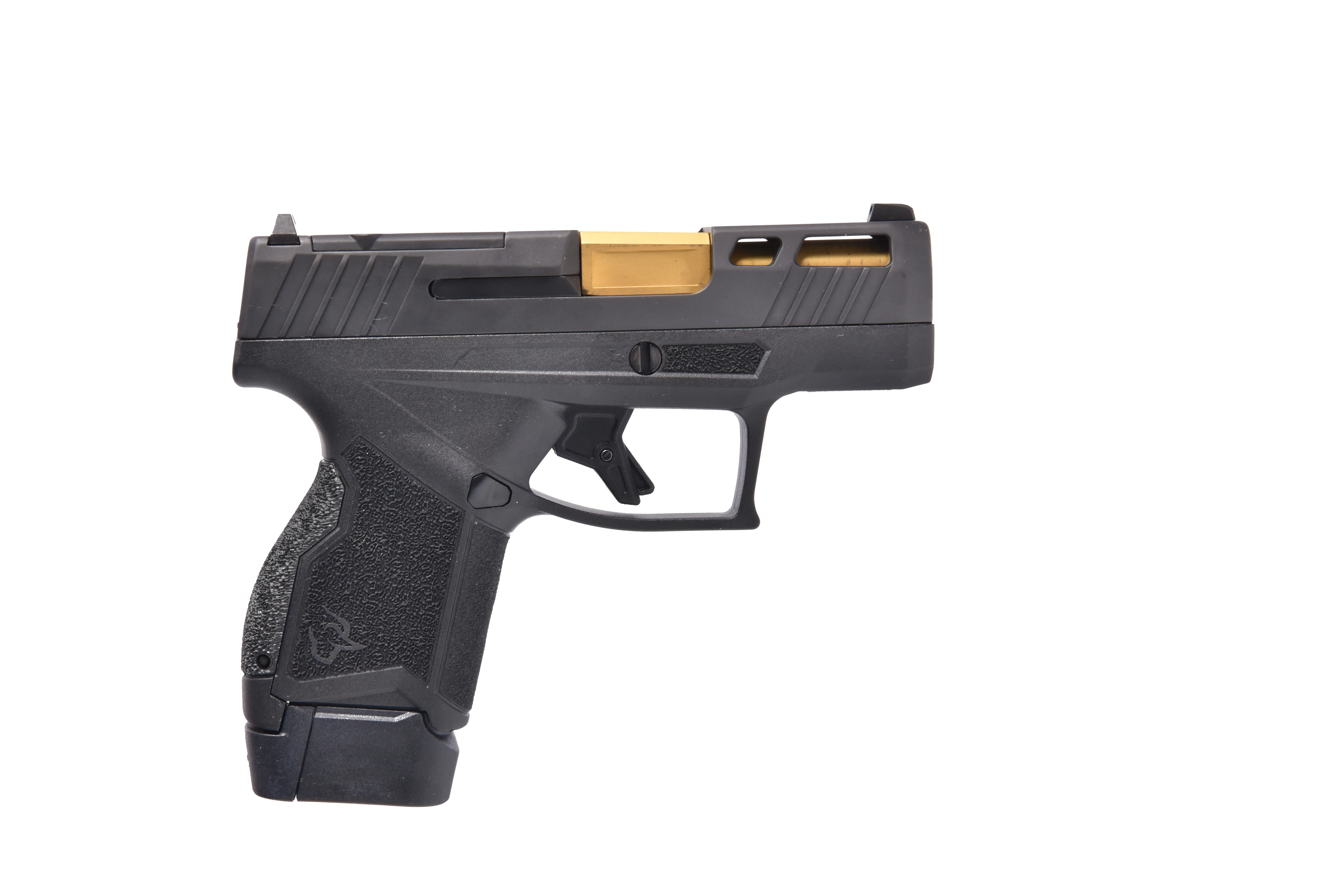 The Taurus GX4 9mm Semi-Auto Pistol is a compact, feature-rich handgun designed for concealed carry and personal defense. This model features a 3.06-inch gold PVD-treated barrel, a durable black gas nitride slide finish, and a polymer frame for lightweight, dependable performance. With a generous capacity of 13+1 rounds, it includes two magazines (one 11-round and one 13-round), and its optics-ready slide (TORO) accommodates modern sighting solutions. The flat face serrated trigger and slide cuts further enhance functionality and control, ensuring an optimal shooting experience. Designed for precision, this pistol is equipped with black serrated rear and white dot front sights. The GX4 is an exceptional choice for shooters looking for reliability, affordability, and cutting-edge modern design in a compact firearm.