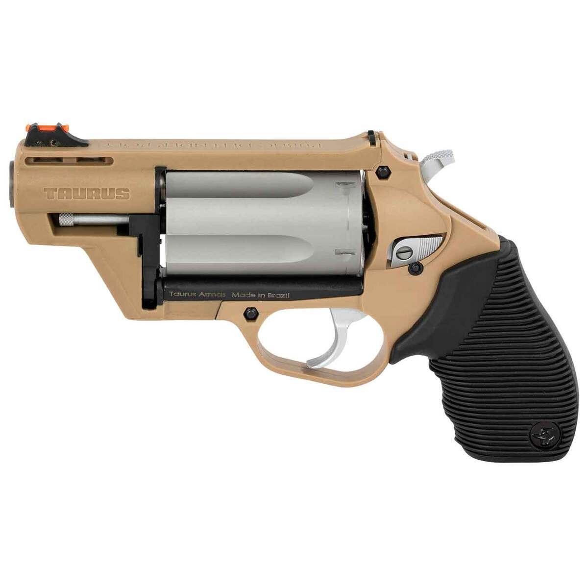 The Taurus Public Defender Polymer redefines versatility and performance in revolvers. An ideal choice for personal defense or home protection, this firearm is chambered in 410 Bore | 45 Colt, offering a flexible combination of calibers. Featuring a 2-inch barrel, this compact revolver is equipped with a Flat Dark Earth polymer frame and stainless steel cylinder, delivering a balance of durability, lightweight handling, and corrosion resistance. The Ribber Grips provide superior comfort and control, while the red fiber optic front sight ensures rapid target acquisition. Designed for double and single action operation and with a five-shot capacity, the Public Defender Polymer is a robust and reliable revolver suitable for a variety of shooting applications.