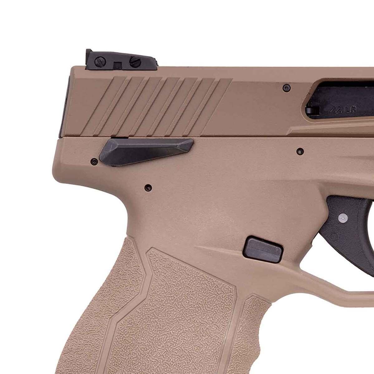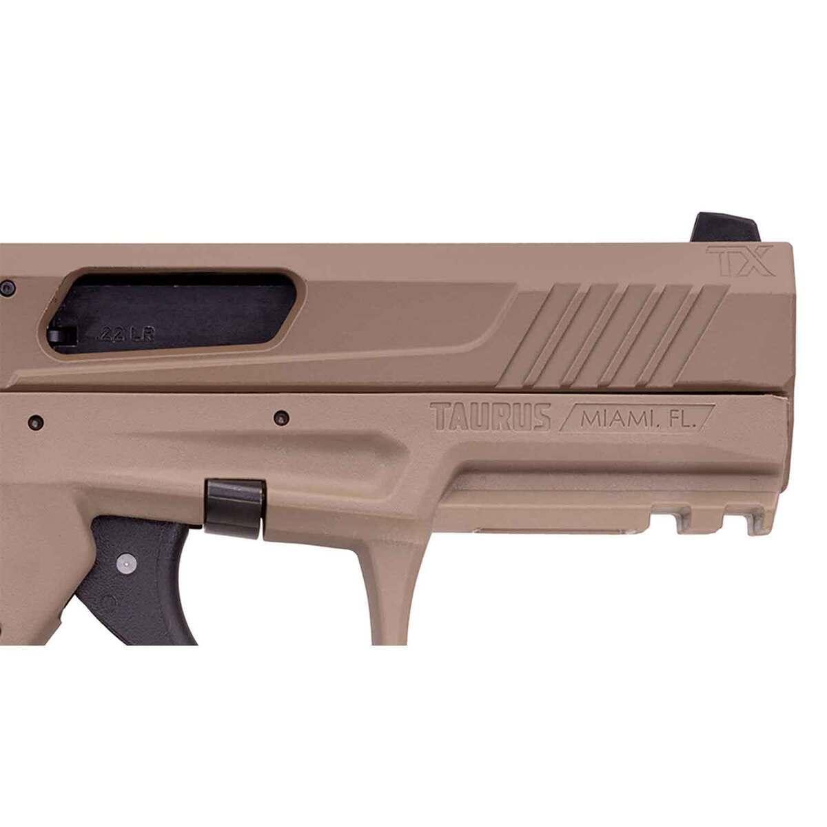 The Taurus TX22 is a versatile and reliable rimfire pistol, chambered in 22 Long Rifle, with a 4-inch barrel and a durable FDE Cerakote finish. Designed for both new and experienced shooters, this lightweight pistol features a 16+1 round capacity, an ambidextrous manual safety, and a convenient Picatinny rail for accessory attachments. Its adjustable white dot rear sights and ergonomic Flat Dark Earth polymer grips ensure precise aiming and comfortable handling. Whether for plinking at the range or honing your marksmanship skills, the TX22 delivers exceptional performance and value.