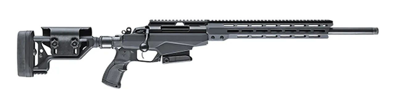 The Tikka T3X TAC A1 is a high-performance, precision bolt-action rifle chambered in .308 Winchester. Featuring a 20-inch threaded barrel with a 5/8×24 thread pattern, it is designed for optimal versatility and accuracy. This rifle includes a synthetic adjustable stock with an integrated adjustable cheek piece, a Picatinny rail for accessory mounting, and an adjustable double-stage trigger for a superior shooting experience. With a robust 10+1 round capacity, black finish, and tactical features, the Tikka T3X TAC A1 is the perfect choice for both professional marksmen and firearm enthusiasts seeking reliability and performance.