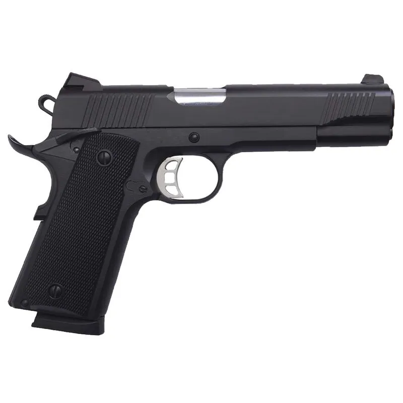 The Tisas 1911 DUTY in 9mm combines classic 1911 styling with modern performance features to deliver a highly reliable semi-auto pistol. With its durable black Cerakote finish, a steel frame, and Novak-style 3-dot sights, this handgun offers precision, durability, and ease of use. The single-action design ensures crisp control, while the 5-inch barrel maximizes accuracy. The Tisas 1911 DUTY comes equipped with a lockable hard case and includes two 9-round magazines, making it perfect for self-defense, target shooting, and firearm enthusiasts looking for traditional 1911 aesthetics in a 9mm platform.