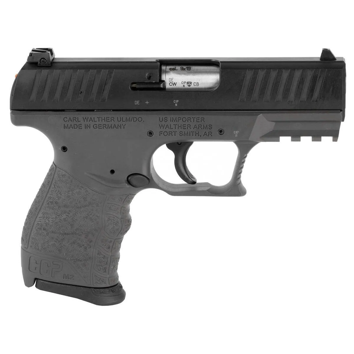 The Walther CCP M2 9mm Luger Pistol features a compact design with a 3.54-inch barrel, ideal for concealed carry and personal defense. With its tungsten gray finish, ergonomic polymer grips, and a fixed barrel, this pistol ensures exceptional comfort, accuracy, and ease of maintenance. The innovative tool-less takedown enables simple cleaning and care, while the addition of an external safety, front and rear slide serrations, and a reversible magazine release enhance versatility and functionality. The CCP M2 is an outstanding choice for everyday carry, combining Walther’s renowned quality with user-friendly innovations.