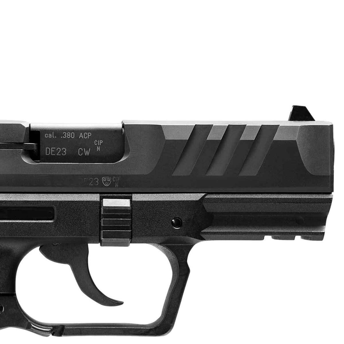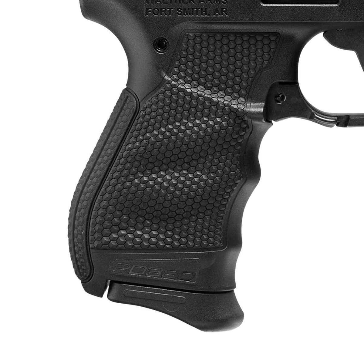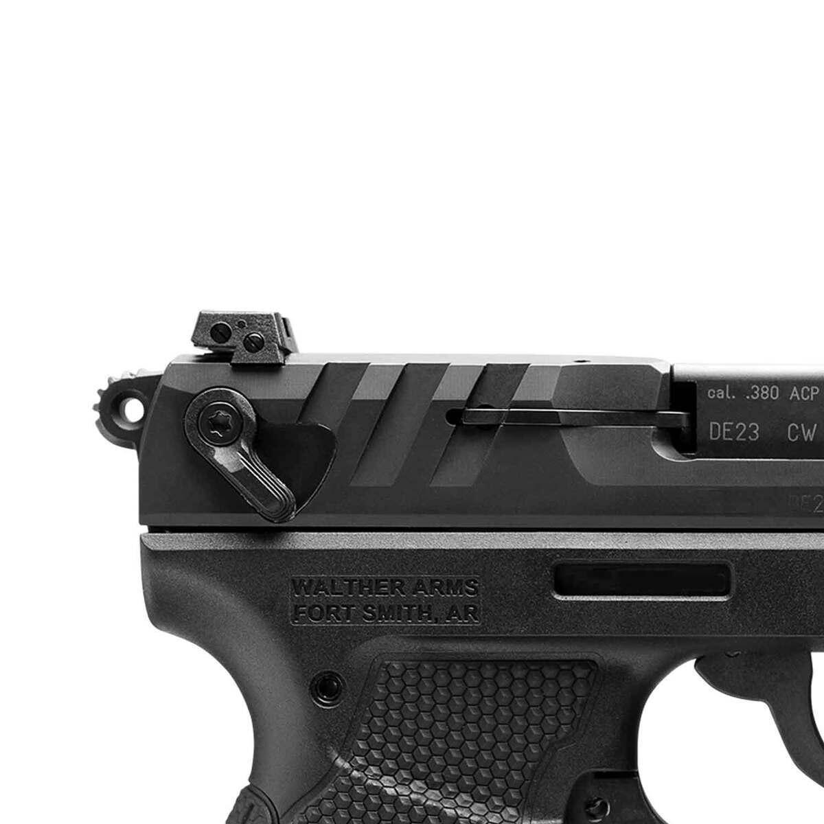The Walther PD380 is a compact and lightweight pistol chambered in 380 Auto (ACP), designed for both ergonomic handling and reliable performance. Its double/single action trigger system combines safety with precision, offering a long initial pull followed by a shorter pull for accurate shooting. Enhanced with SuperTerrain Slide Serrations, the PD380 ensures a secure grip for effortless slide manipulation, even under stressful situations or adverse conditions. This sleek handgun features a 3.7-inch barrel, black polymer grips, and low-profile 3-dot combat sights, delivering the perfect combination of functionality and ease of use for shooters of all levels.
