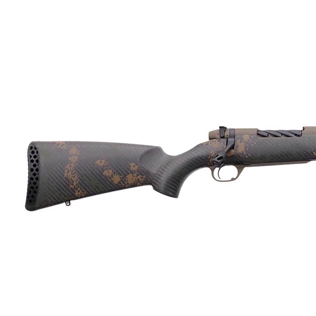 The Weatherby Mark V Backcountry Carbon is a premium bolt-action rifle chambered in 6.5 Creedmoor, designed for discerning hunters and precision shooters. Featuring a lightweight BSF carbon fiber barrel and Patriot Brown Cerakote finish, this rifle is engineered for durability and performance in even the harshest environments. With a TriggerTech trigger, 3D HEX recoil pad, threaded barrel with a 5/8×24 thread pattern, and a camo stock made of carbon fiber with green and brown accents, it delivers unparalleled accuracy, comfort, and style. Perfect for backcountry adventures, this rifle is built to excel in precision, reliability, and handling.