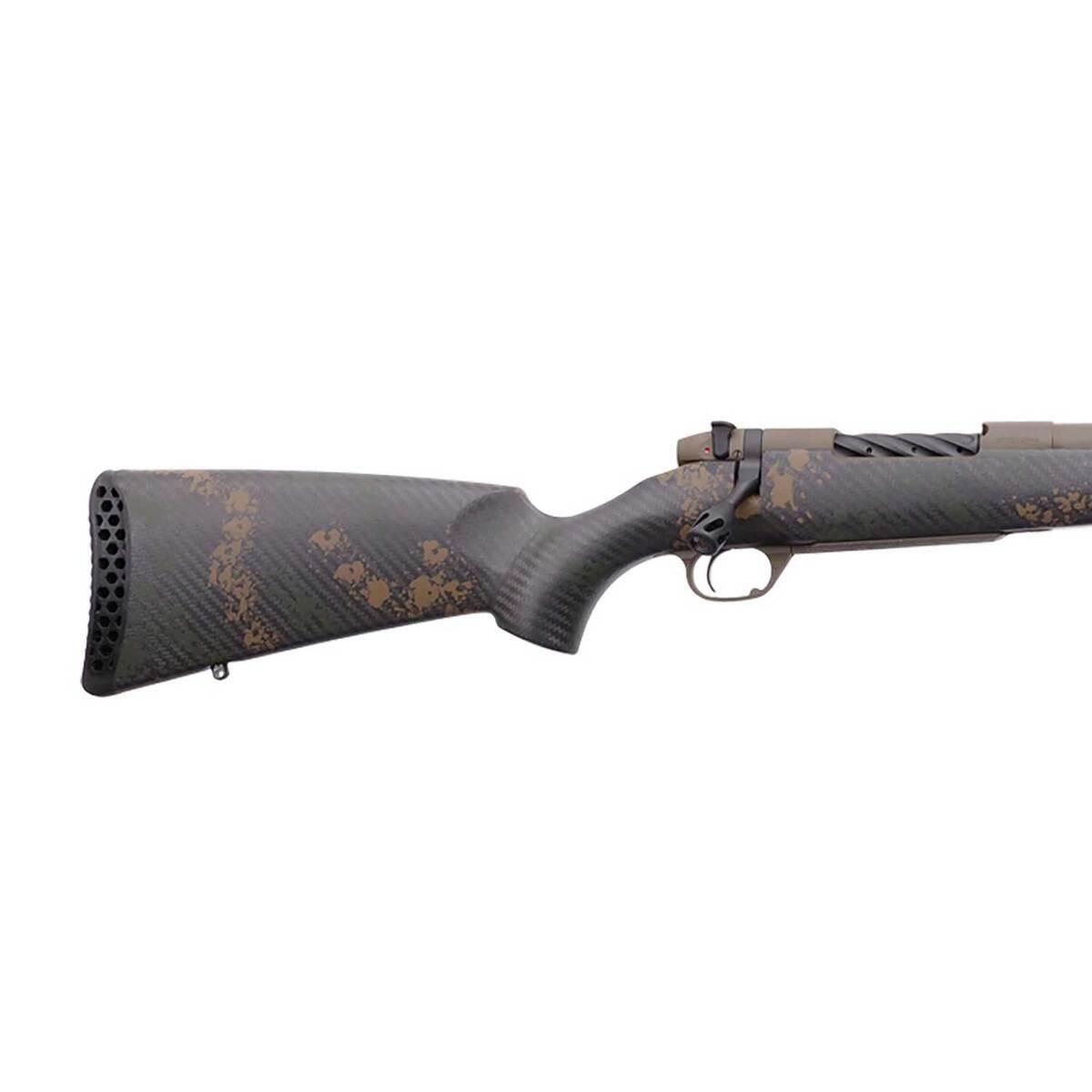 The Weatherby Mark V Backcountry Carbon combines cutting-edge technology with the traditional reliability of the Weatherby Mark V series. Chambered in the high-performance 6.5 WBY RPM, this rifle boasts a 24-inch BSF carbon fiber barrel for exceptional accuracy, reduced weight, and durability. Its Patriot Brown Cerakote finish ensures corrosion resistance and a sleek aesthetic, while the camo carbon fiber stock with green and brown accents provides both stability and a modern look. Weighing just 5.9 lbs, this bolt-action rifle features a 3D HEX recoil pad for unparalleled comfort during extended shooting sessions and a TriggerTech trigger for crisp, precise shots. With its threaded barrel (5/8×24) and no-sights configuration, the Mark V Backcountry Carbon is an excellent choice for hunters and long-range precision shooters who demand the best.