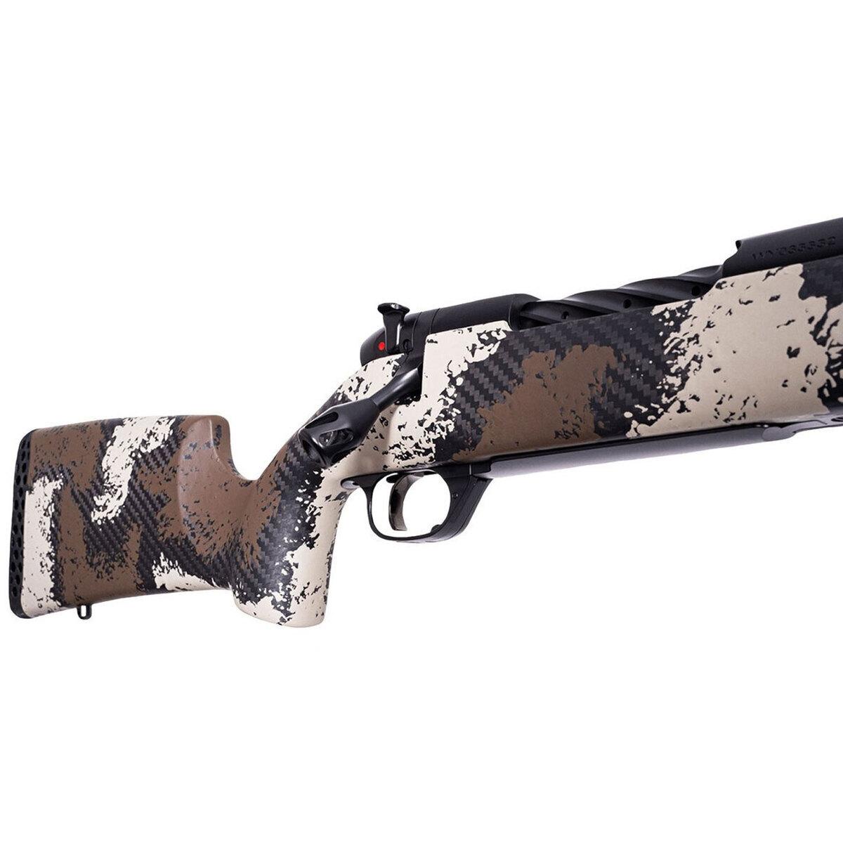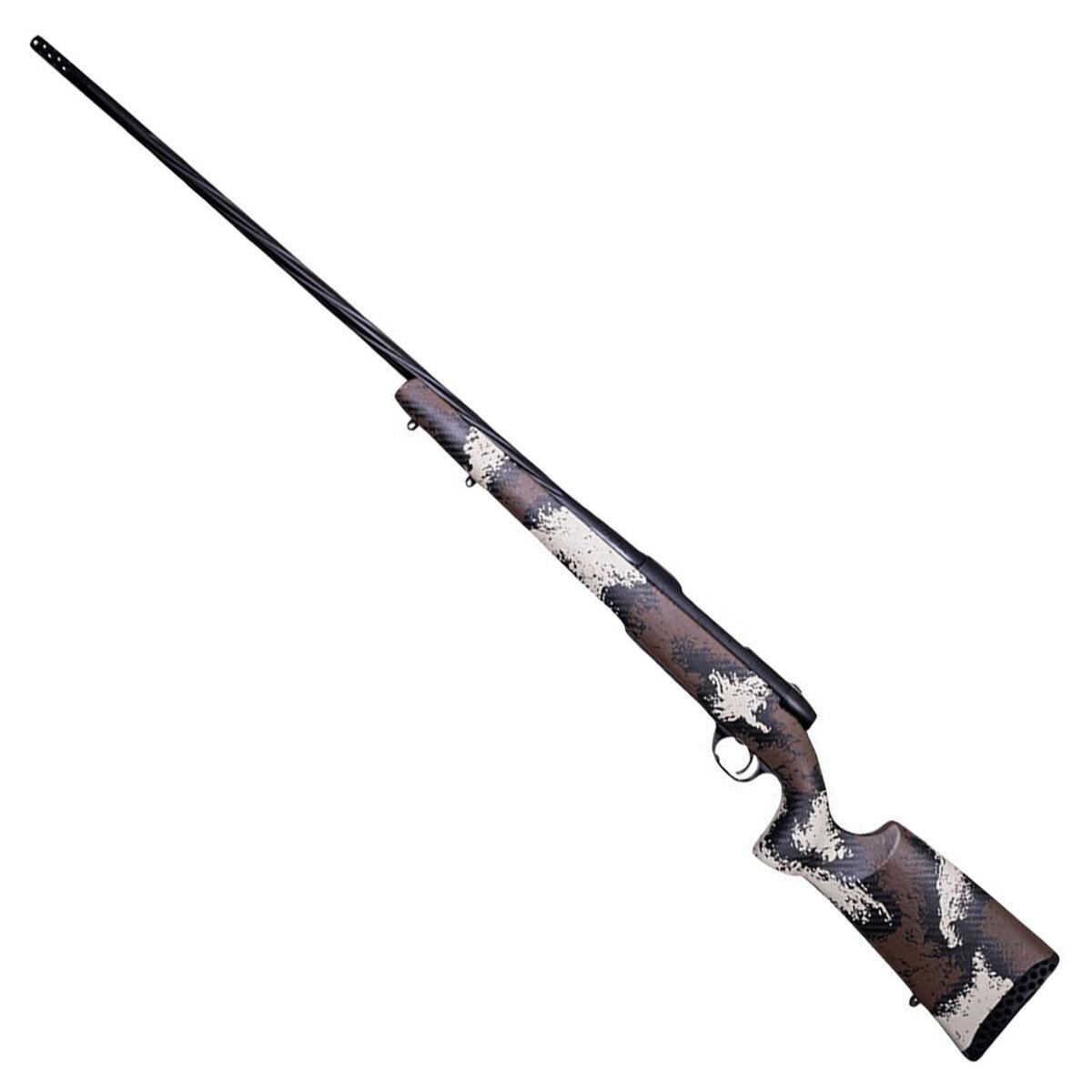 The Weatherby Mark V High Country is a premium bolt-action rifle designed for hunters and shooting enthusiasts seeking top-notch performance and precision. Chambered in the powerful 6.5-300 WBY Mag caliber, this rifle features a 26-inch barrel with a rugged Graphite Black Cerakote finish for superior durability. The lightweight Peak 44 Bastion stock in a camo design with brown and tan accents ensures a comfortable and stable shooting experience. Additional enhancements include a TriggerTech trigger for impeccable shot control, a Hex recoil pad for reduced felt recoil, and a threaded barrel for muzzle devices or suppressors. With an overall length of 48.125 inches and weighing only 6.8 lbs., this rifle delivers unmatched accuracy and mobility for demanding hunts and field applications.