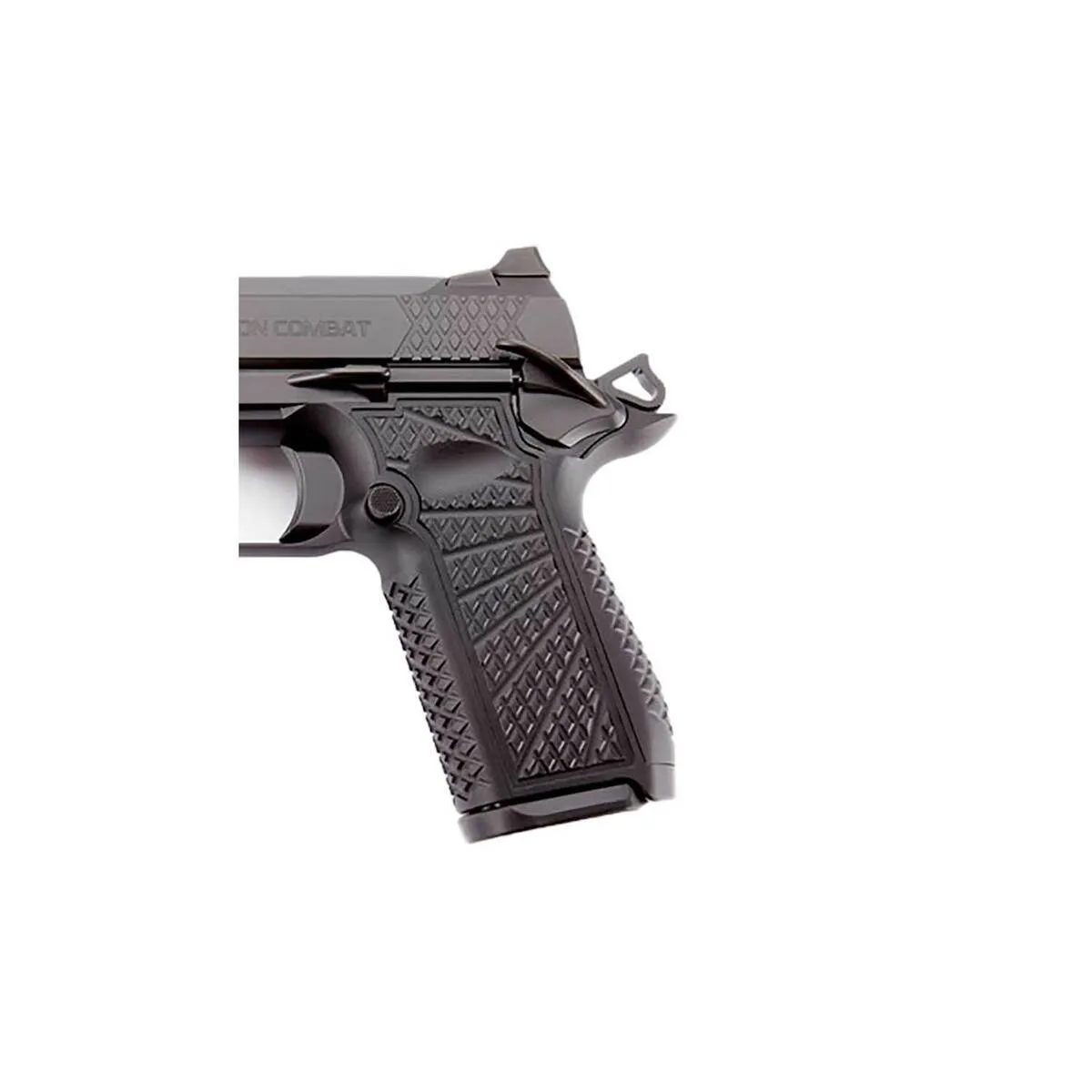 The Wilson Combat SFX9 Compact 9mm Luger is a cutting-edge handgun designed for high-performance and concealed carry. Featuring a 3.25-inch barrel, a compact solid-bodied aluminum X-frame with reliability-enhanced frame rails, and unique X-TAC frontstrap/backstrap treatment, this pistol offers exceptional ergonomics and shooting precision. It is equipped with a 15+1 round capacity, fiber optic sights, and a durable black DLC finish. Additionally, it boasts premium features such as a concealment bulletproof hammer and thumb safety, ensuring reliability and safety in every shot.