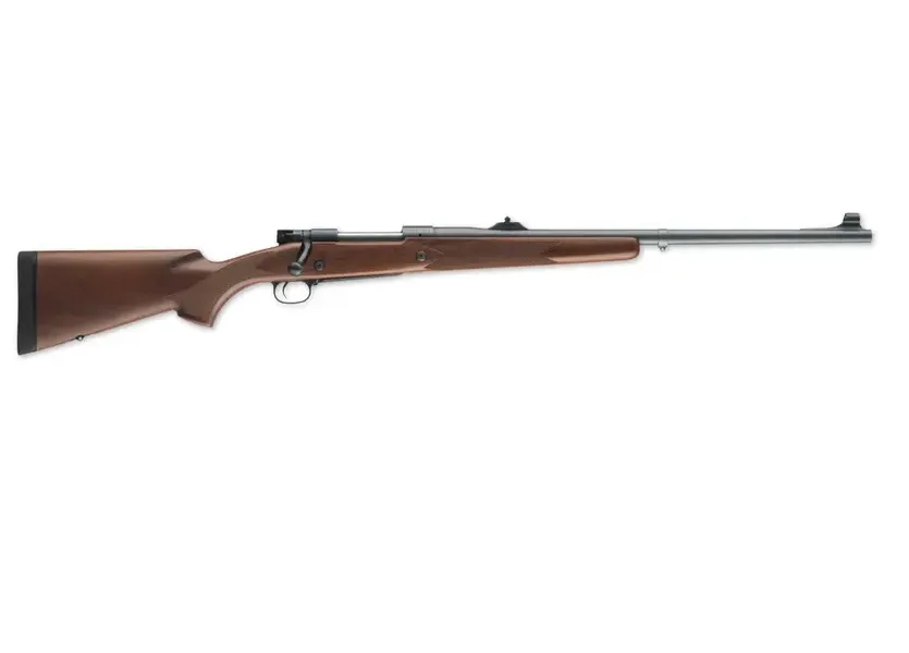 The Winchester Model 70 Safari EXP is a premium bolt-action rifle crafted for the most demanding hunters and shooters. Chambered in the powerful 458 Win Mag caliber, this rifle is designed to tackle big game with confidence and precision. Featuring a 24-inch blued barrel, a robust M.O.A. Trigger System for optimal accuracy, and a classic walnut stock with Pachmayr Decelerator Pad, it combines elegance, durability, and performance. The hinged floorplate ensures reliability in the field, while its impeccable design caters to the needs of experienced sportsmen.