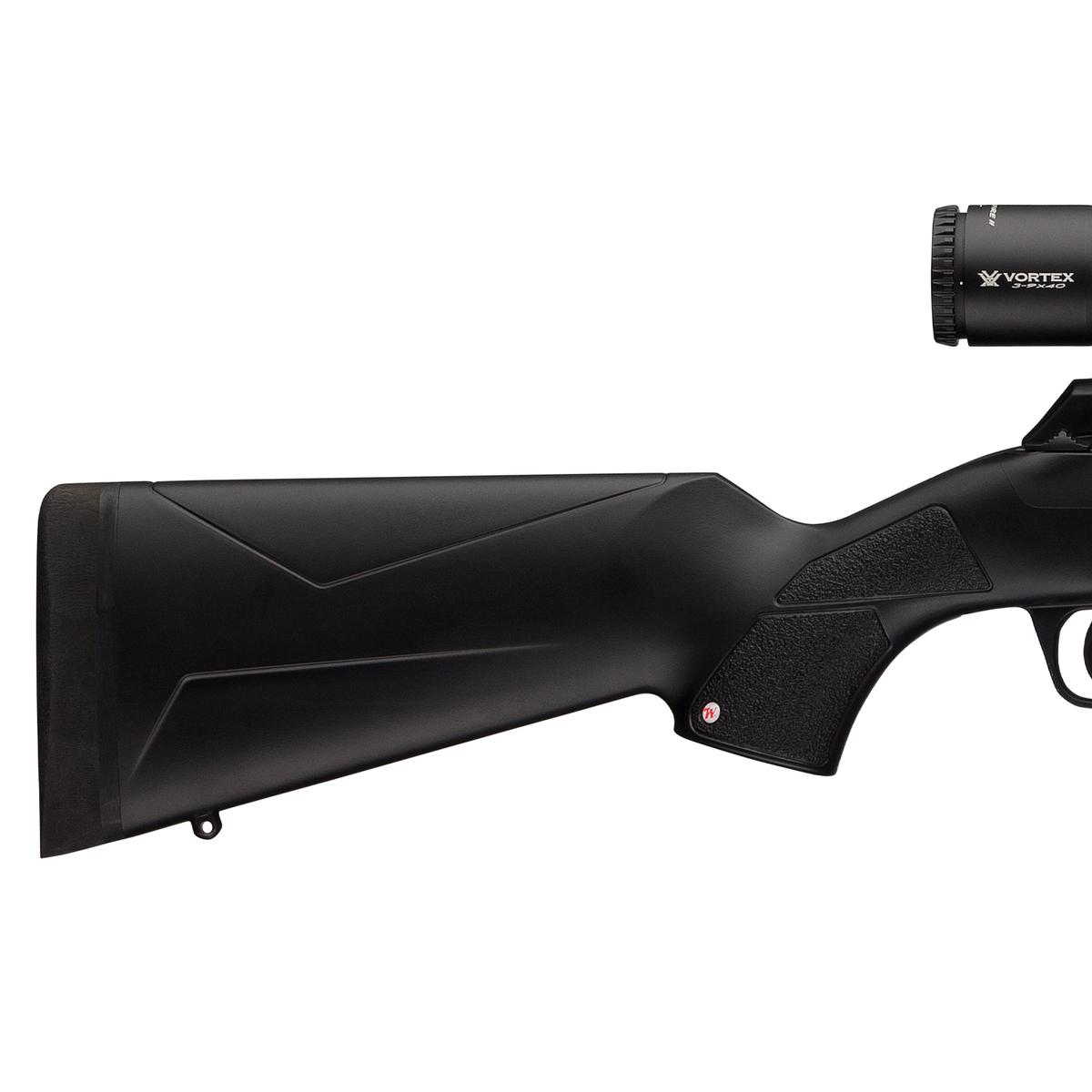 The Winchester XPR Compact Black Bolt Action Rifle/Scope Combo in 6.5 PRC caliber with a 22-inch barrel is the ultimate tool for the next generation of hunters. Featuring a Vortex Crossfire II 3-9×40 scope with a BDC reticle, this combo ensures top-tier accuracy with Weaver style rings and bases. Designed for rugged reliability, the XPR has an advanced polymer stock for superior grip in wet conditions and a matte blued finish for a tough, non-reflective surface. Equipped with a precision button rifled barrel, free-floating design, and M.O.A. Trigger System, this rifle delivers unmatched performance in challenging environments. Additional features include a detachable box magazine, bolt unlock button, and sling swivel studs, making it a versatile and durable companion for any hunting expedition.