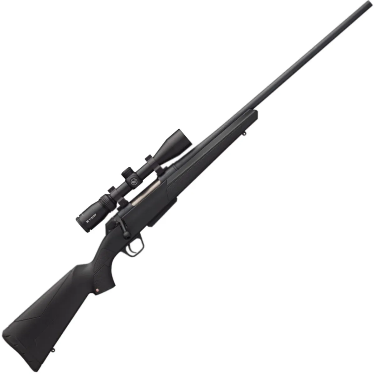 The Winchester XPR Vortex Crossfire II Bolt Action Rifle in 243 Winchester combines cutting-edge innovation with legendary durability, making it the perfect choice for hunters and precision shooters. With a rugged synthetic stock and a durable black Perma-Cote finish, this rifle is built to withstand the harshest conditions. The rifle is chambered in 243 Winchester and features a 22-inch free-floating chromoly steel barrel that is button-rifled for unbeatable accuracy. The M.O.A. Trigger System ensures crisp and reliable trigger performance, while the short 60-degree bolt lift provides enhanced scope clearance for quick action cycling. The included Vortex Crossfire II 3-9×40 scope with BDC reticle, paired with Weaver rings and bases, ensures precise targeting at various distances. Additional features include a detachable single stack box magazine, Inflex Technology recoil pad, and a safety mechanism with convenient bolt release. Whether you’re stalking game or hitting the range, the XPR Bolt Action Rifle guarantees exceptional performance every time.
